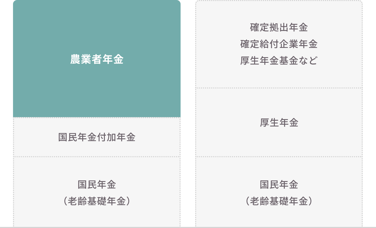 会社員の場合、厚生年金による国民年金への上乗せがありますが、農業者は自ら加入しなければ国民年金だけになります。