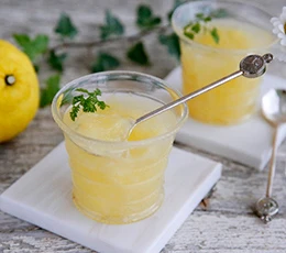 - 鍋にゼラチン、水、砂糖を入れて火にかけ、砂糖が溶けたら火を止め、1を果汁ごと加える。容器に流し入れ、冷蔵庫で1時間以上冷やし固める。