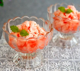 - スイカはおろし金ですりおろし、ザルで種をこす。ハチミツとレモン汁を加えて混ぜ合わせて、冷凍する。